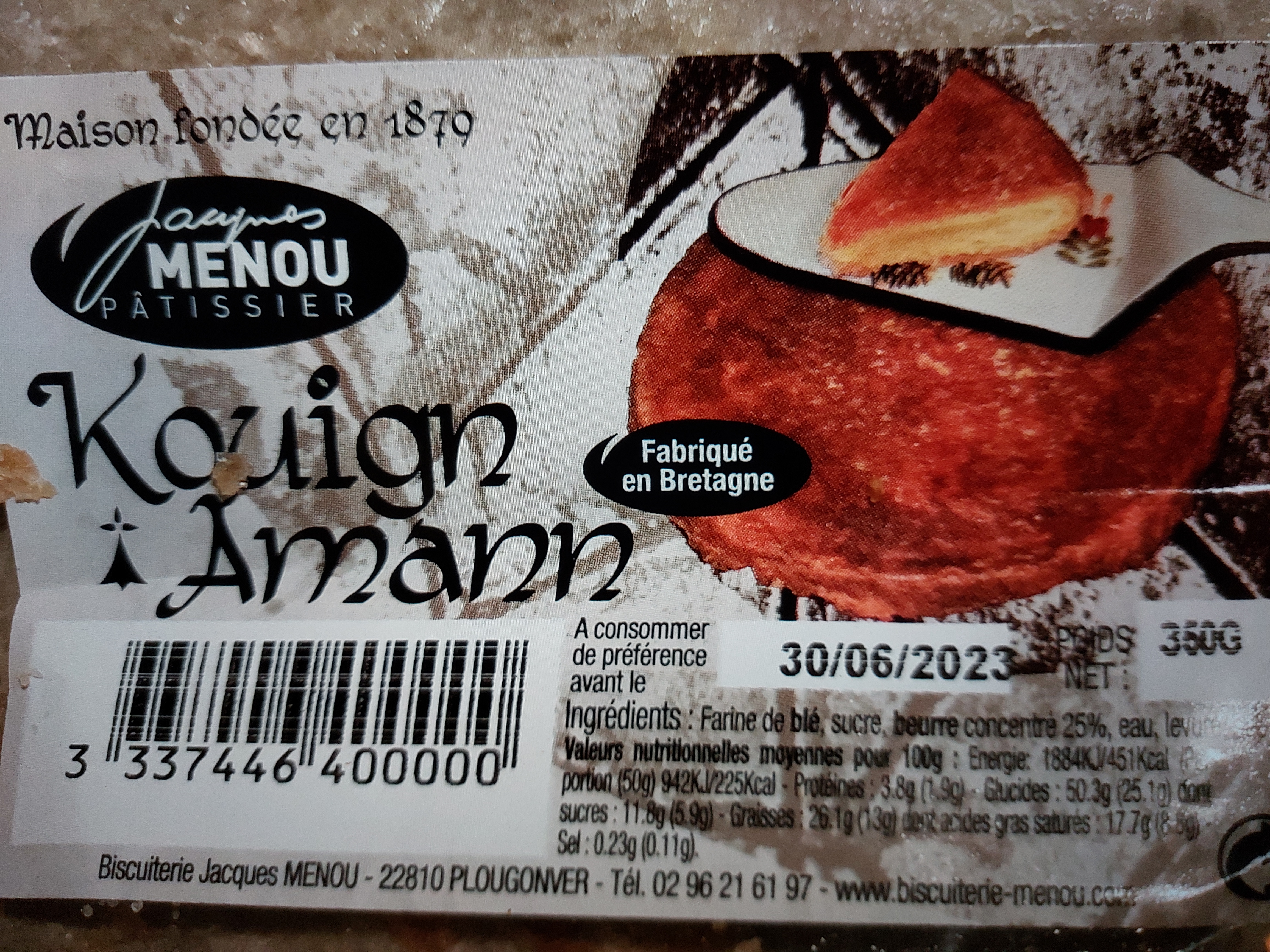 Posté le 07/06/2022 à 16:37"Étant un grand amateur de kouign Amann, j'ai testé celui de la Biscuiterie Menou. Quelle déception. Je n'aime vraiment pas son goût, et il est assez mou. J'en ai goûté des biens meilleurs, à mon goût. Notamment à Pont-Aven, Lorient, ..."