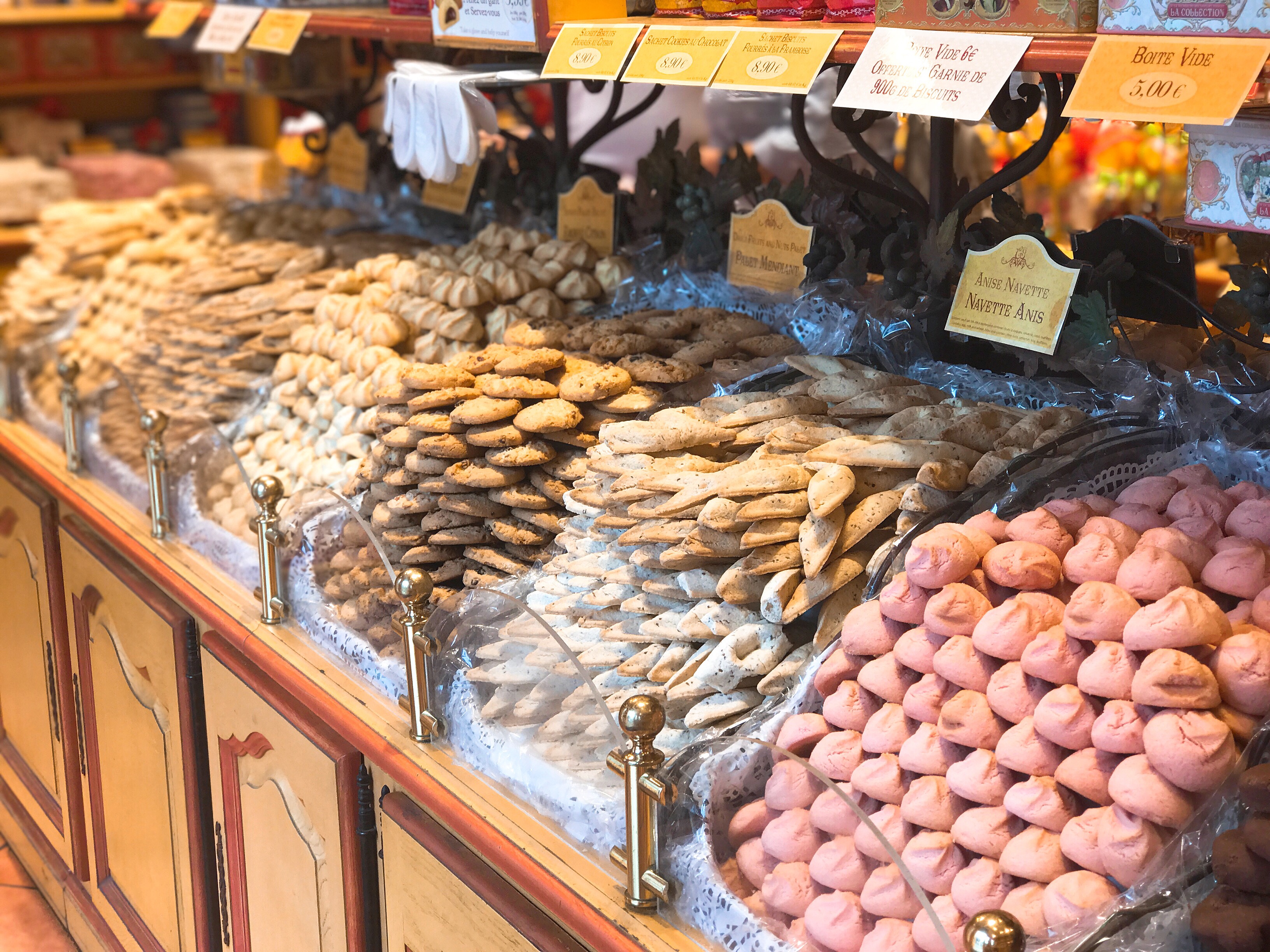 Posté le 05/06/2021 à 21:23" Ici vous pouvez trouver différentes sortes de bonbons (biscuits). C'est la boutique parfaite pour acheter un cadeau en provenance de France. Il existe une option pour remplir une boîte en métal fantaisie avec ces biscuits fabriqués à la main, parmi lesquels vous pouvez choisir de les mettre dans la boîte. Cela m'a coûté environ 25 euros pour 500 grammes, boîte comprise. "